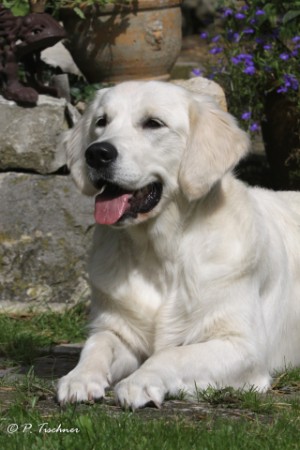 "Lilly"Ramchaine Romantic Moon geworfen: 05.01.2012 HD: B1/A2 ED: frei/frei Augen: RD/HC/PRA frei GR_RRA1/2 frei, prcd-PRA frei Icht-A frei/m Formwert: Vorzüglich Prüfungen: FDW, ZZL Freiwillige kardiologische Herz-Untersuchung : 03.07.2012 frei Eltern: Beethoven of the Hellacious Acres x Ramchaine Moonstruck  | Lilly gerade 8 Monate |
