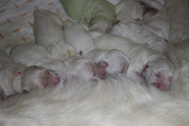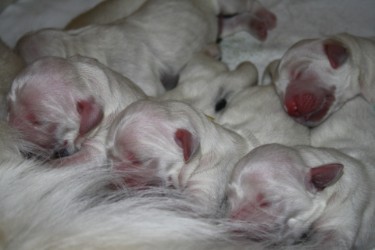 Wir erwarten aus dieser Verpaarung gesunde, verschmuste, besonders menschenbezogene, freundliche Familienhunde, die auch für die Therapiearbeit geeignet sind.