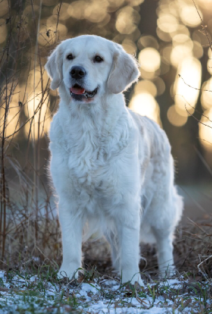 25 Monate alte helle Hündin von vorzüglichem Typ, sehr gute Vorderhandwinkelung, vorzügliche Hals- Rückenlinie, vorzügliche Hinterhandwinkelung, breiter und tiefer gut aufgerippter Brustkorb, sehr schöne Katzenpfoten, sehr gute Felltextur mit sehr freundlichem und femininem Wesen.